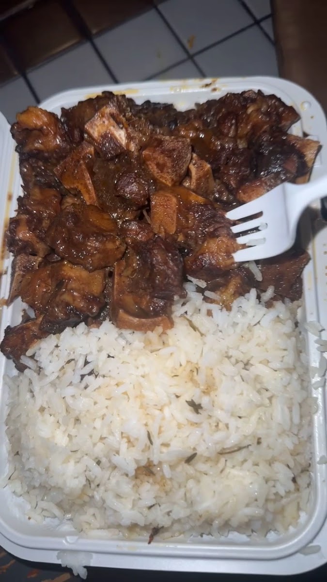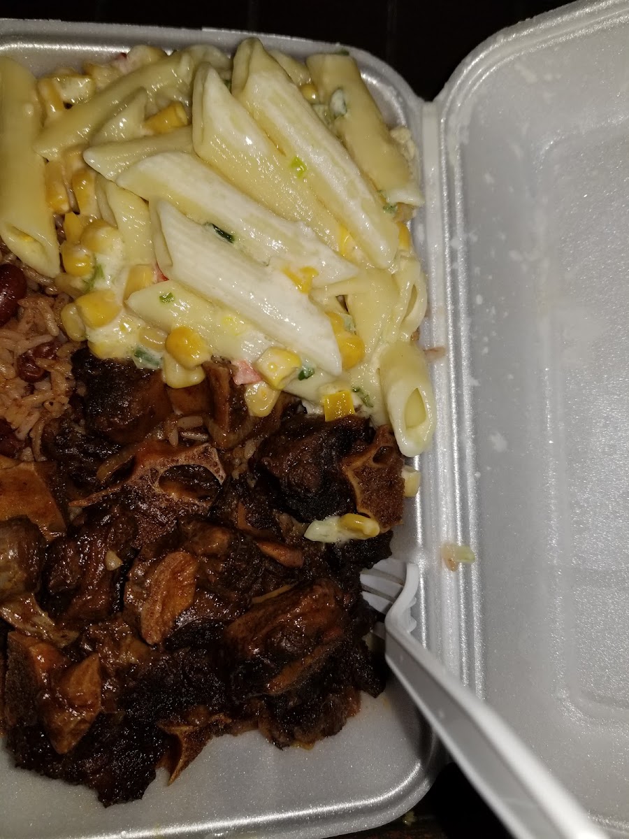 The food was mouthwateringly delicious! I wish I took a picture before I started eating lol it was soooooo good we ordered another one for my mom! And the portions are fantastic! I can’t wait to heat up my leftovers tomorrow! I got the oxtail with rice and peas and a side of plantain.